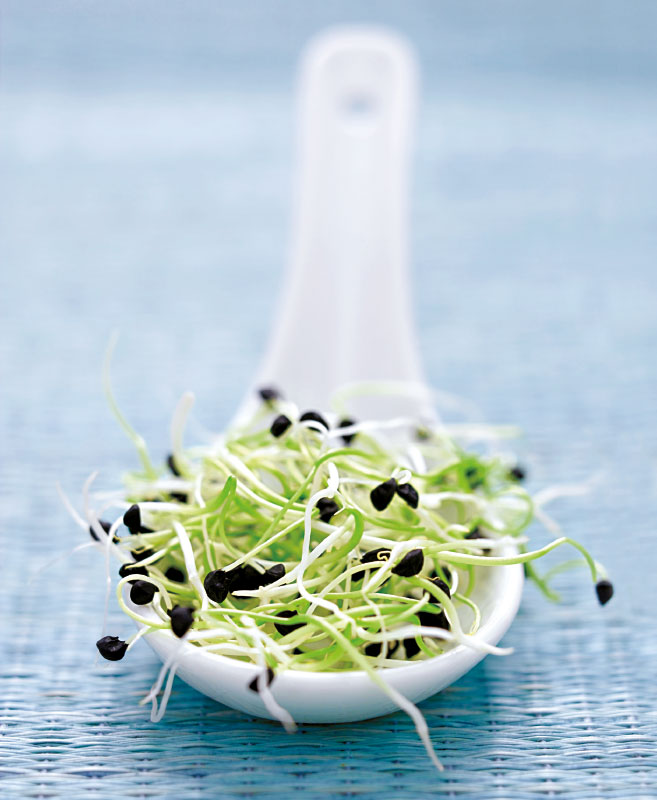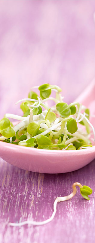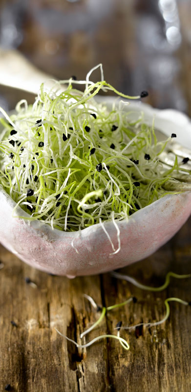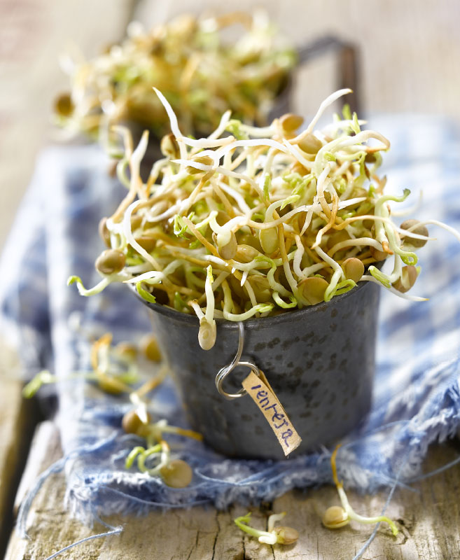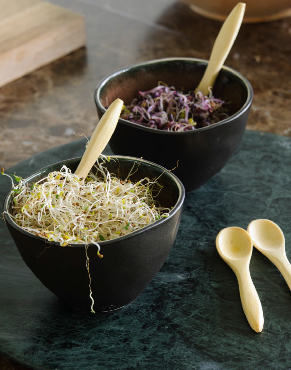 Como los germinados son alimentos frescos –nunca se toman secos, pero sí deshidratados–, no han perdido la vitalidad de sus principios activos, y sus enzimas son aprovechadas en su totalidad. No hay que olvidar que las enzimas son esenciales para favorecer la digestión de los alimentos. En la alimentación moderna, con la proliferación de platos precocinados y la ausencia de alimentos crudos, la asimilación de enzimas suele sufrir un déficit notable. Y cuando el organismo se ve forzado a producir enzimas propias o endógenas a falta de las exógenas –procedentes de los alimentos–, las reservas en enzimas se reducen; como son vitales en muchos procesos metabólicos, su menor cantidad puede hacer que el proceso de envejecimiento se acelere. Por su riqueza en enzimas, los germinados, así como las verduras y las frutas, contribuyen, sin duda, a retardar la oxidación celular.
