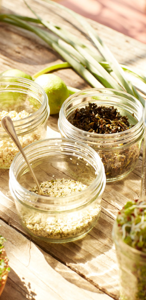 Hay semillas crudas y enteras que resultan especialmente adecuadas para enriquecer las ensaladas, como es el caso de la alcaravea, el maíz, las pepitas de calabaza, los piñones, las nueces o el anís verde. Lo mismo cabe decir de los germinados de soja, de alfalfa o de garbanzos. Otras semillas pueden llegar a ser indispensables en la preparación de salsas y aderezos líquidos, como la mostaza, el girasol, la soja o el sésamo. Ya hemos hablado de las semillas que se incorporan a panes y pasteles, como las de amapola, calabaza, girasol, cáñamo, nuez y lino. Se pueden añadir en snacks para tomar entre horas, en guisados de carne o pescado o bien en un relleno de pasta, en purés y sopas, como ocurre con la quinoa, el amaranto, el eneldo o la biznaga. No menos raro es aprovecharnos de las semillas para incorporarlas en el yogur, el kéfir, mezclarlas con quesos frescos o con frutas frescas.