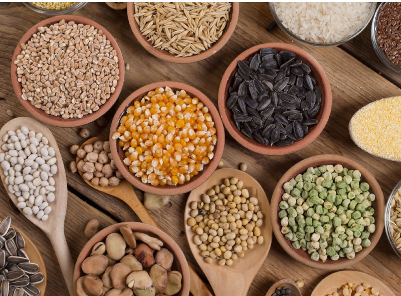 Las semillas de cereales son ricas en carbohidratos, proteínas y fibra, pero son deficientes en aminoácidos esenciales —salvo en algunos casos, donde están presentes algunos de ellos, como la leucina, la lisina o el triptófano—, en vitamina C y en algún mineral como el sodio; por ello, aunque sean un alimento básico, conviene complementarlo con otros. Por otro lado, salvo algunas semillas, como las castañas y los cereales, el contenido en hidratos de carbono no suele ser muy significativo, pero sí en cambio el de proteínas, que de manera genérica se puede cifrar entre un 12 y un 35 por ciento.