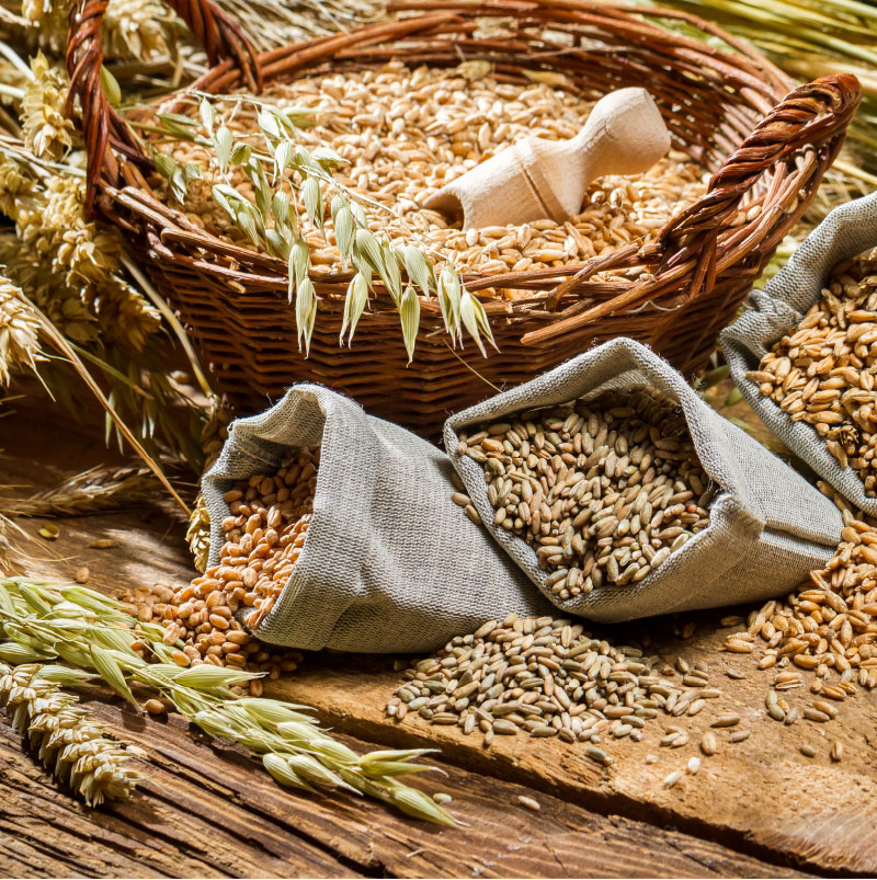 Trigo, espelta, escanda, avena, centeno, cebada, sorgo, mijo, teff. |