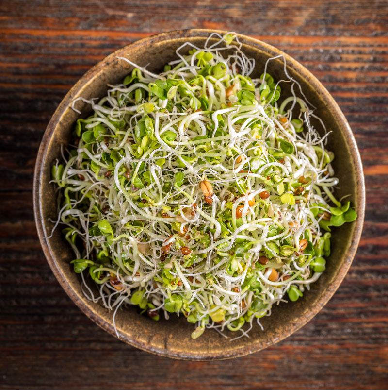 Los germinados son ricos en vitaminas, pero también en minerales, oligoelementos, fibra y enzimas. El contenido en agua, que en las semillas oscila entre el 5 y el 12%, con la germinación aumenta casi a un 70%.