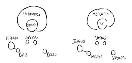 Para los maestros de las escuelas mistéricas era significativo que, si se miraban los órganos internos del cuerpo humano desde arriba, su disposición fuera un reflejo del sistema solar.