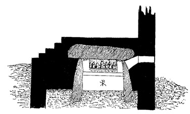 Capilla cristiana de los Siete Durmientes, construida sobre un dolmen, cerca de Plouaret, Francia.