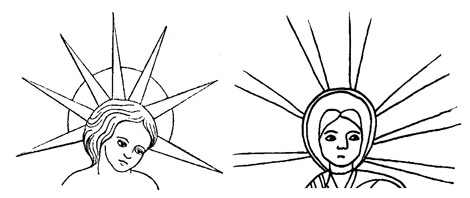 Representación de Apolo en una escultura romana. En la Antigüedad, el dios Sol se solía representar con siete rayos que emanaban de él, en referencia a los siete espíritus solares que conformaban su naturaleza. En el Libro de los muertos egipcio se los llama los Siete Espíritus de Ra, y en la antigua tradición hebrea, los Siete Poderes de la Luz. En el arte de los inicios del cristianismo se usaba idéntica imagen del dios Sol para representar a Cristo, aquí en un mosaico del siglo III en los sótanos del Vaticano.