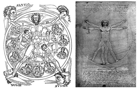 DERECHA La comparación con el famoso dibujo de Leonardo revela un significado que a menudo se pasa por alto. Adán ocupaba literalmente todo el cosmos.