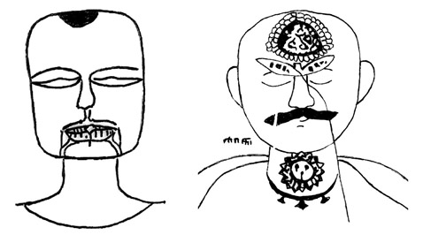 Hombre meditando sobre la glándula pineal, tomado de un dibujo de Paul Klee, con la representación hindú del mismo a modo de comparación.