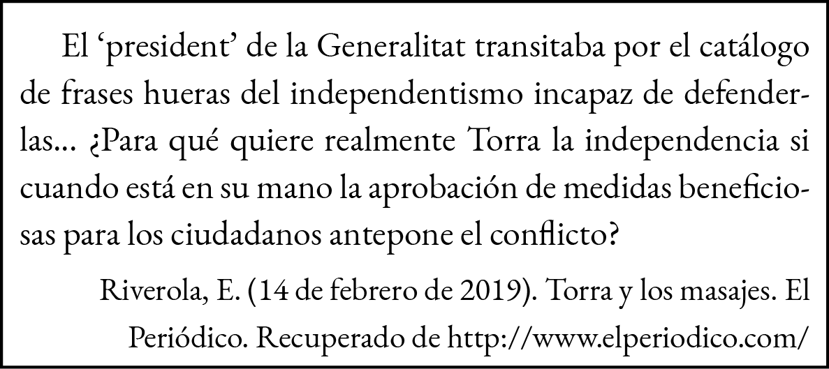 Ya se dijo ayer en el Parlament: si pensamos en otra bandera con todo el discurso del nacionalismo catalán, no lo llamaríamos nacionalismo, sino algo más grave (si cabe). Es tan escandalosa la escenografía, repetir hasta la saciedad “exiliados, presos políticos, represión y verdaderos demócratas”, el ellos y nosotros... la formación de un enemigo y la exaltación de las cualidades propias (exagerándolas y negándoselas al otro), es todo tan escandaloso digo, que se han perdido las referencias reales.