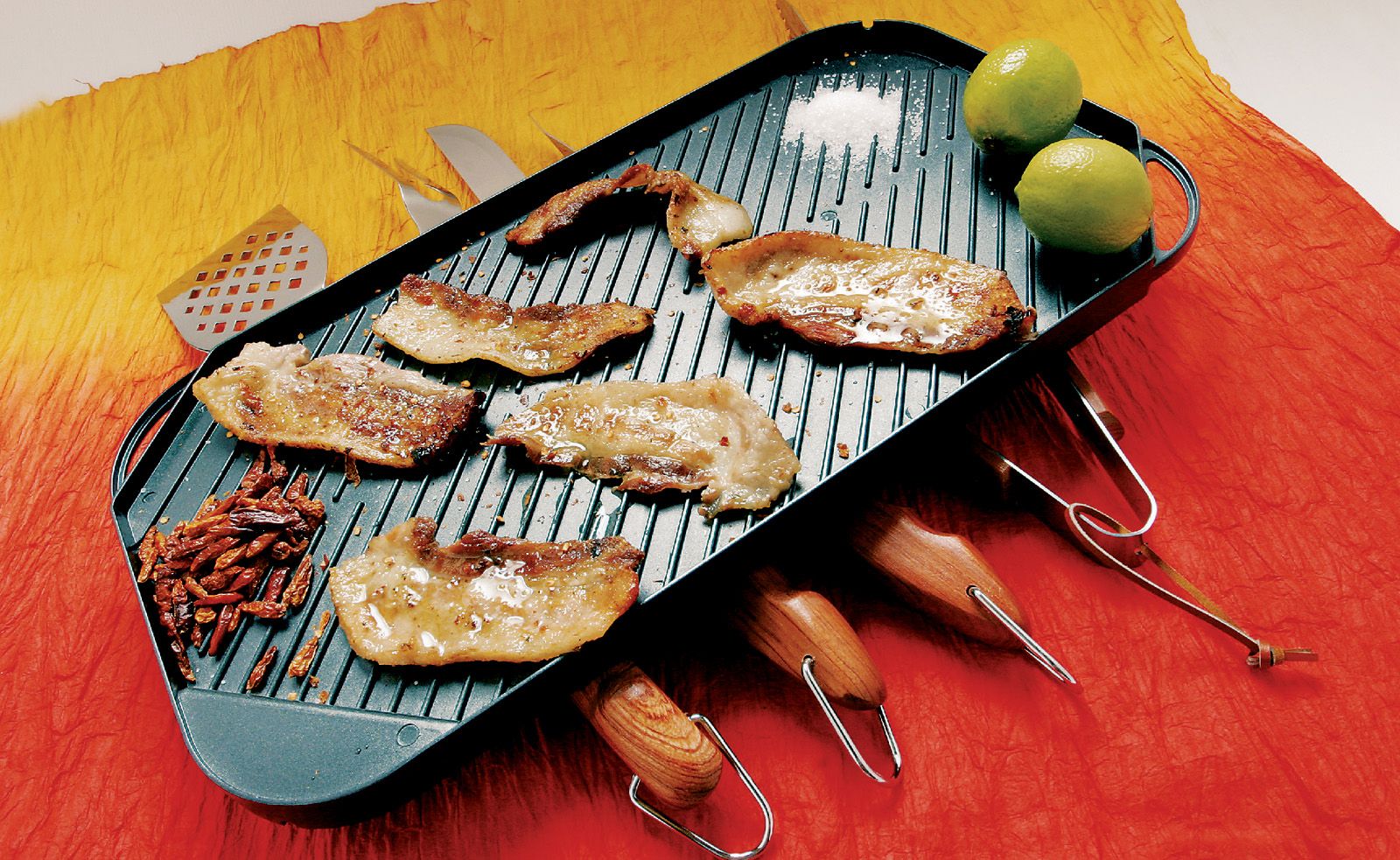 También necesitaremos una paleta larga y un trinchante para dar la vuelta a los alimentos mientras se asan, y unas tenazas largas para levantar las porciones de más peso.