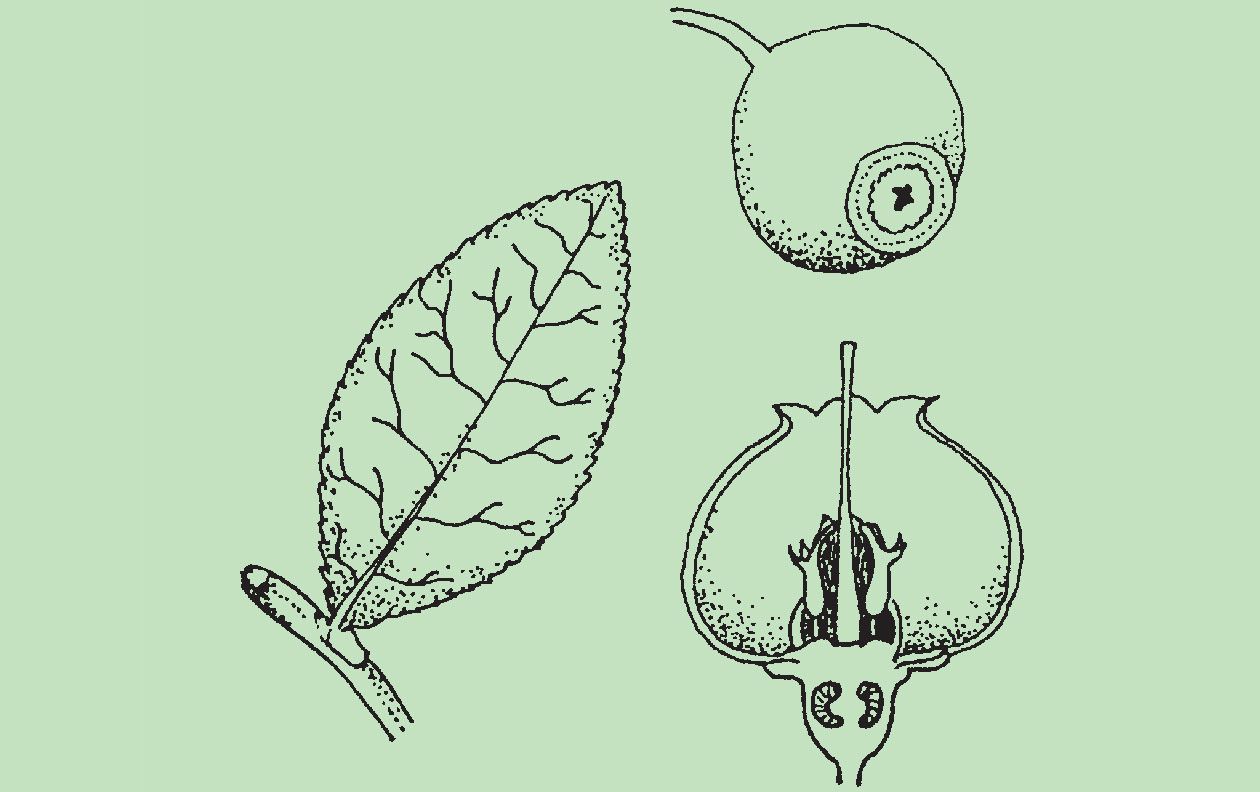 Es un árbol de hoja caduca de 3 a 10 m de alto. La corteza es gris-parda, lisa. La copa es extendida, irregular, con ramas robustas, nudosas y ascendentes.