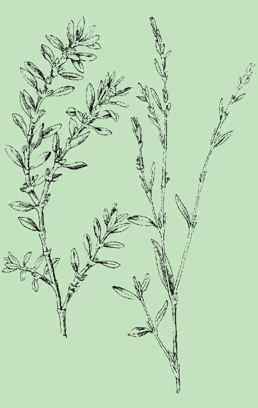 Tallo. Rojizo, grácil, recto o tumbado sobre el suelo, ramificado, con nudos abultados con frecuencia y pilosidad difusa.