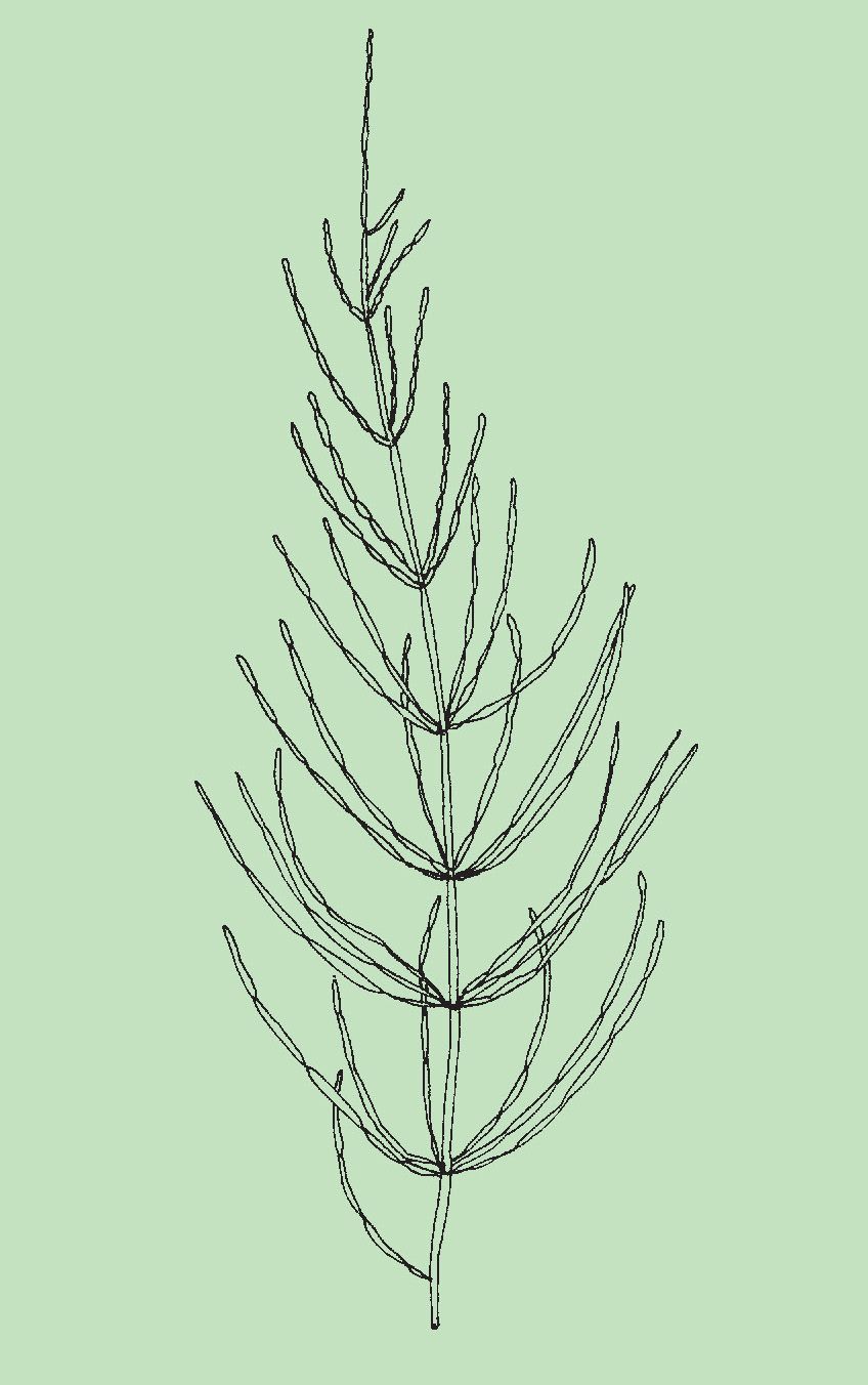 Tallo. Recto, ramificado, de color verde con estrías azules, brillante, lleno.