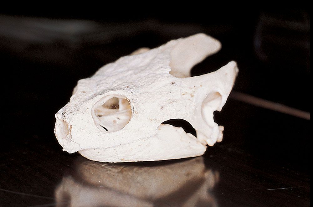 El cráneo de todas las tortugas vivas es de tipo anápsido (no presenta depresiones ni fosas en las regiones temporales), mientras que el de todos los demás reptiles (escamosos, rincocéfalos y cocodrilos) es de tipo diápsido y presenta dos forámenes temporales a cada lado