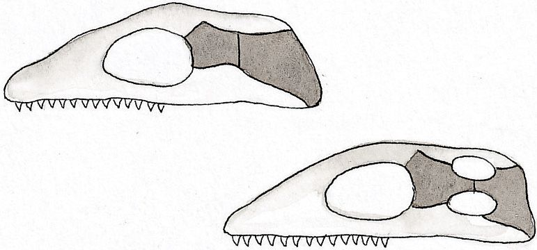 Presencia de la placa intergular del plastrón de un pleurodiro (a la izquierda) junto al plastrón de un criptodiro, que no presenta dicha placa