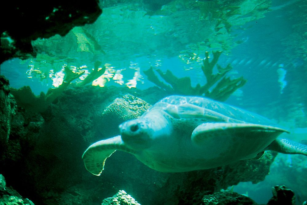 Las tortugas marinas están inscritas en el Apéndice I y en el Anexo A, por lo que no pueden tenerse en cautividad, excepto en acuarios y oceanarios con un permiso especial. En la fotografía, un ejemplar de Caretta caretta caretta del acuario de Génova (Italia)
