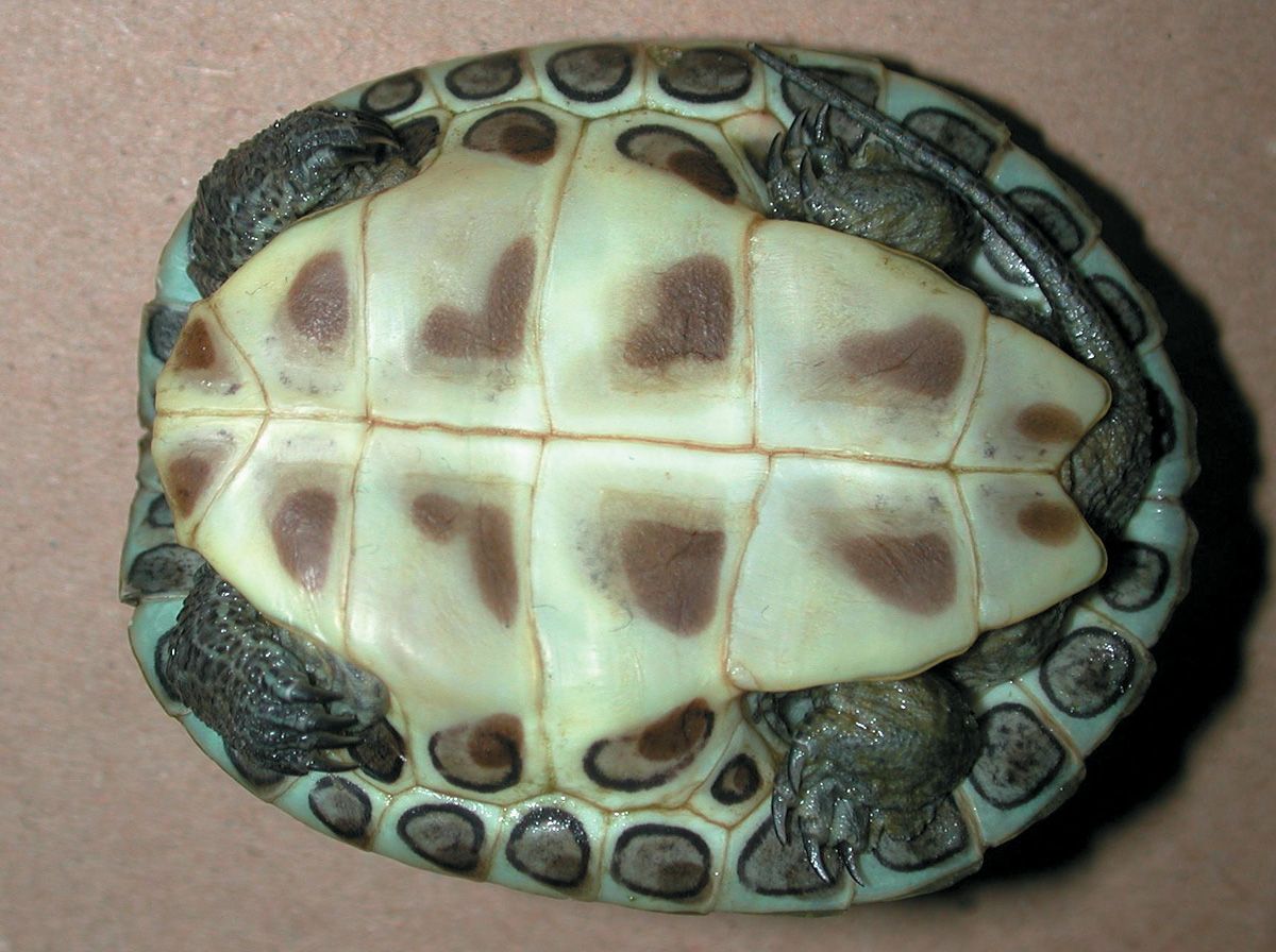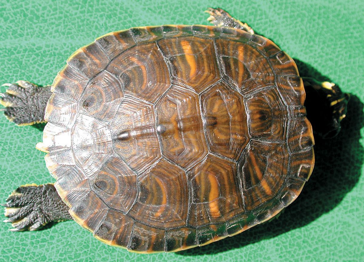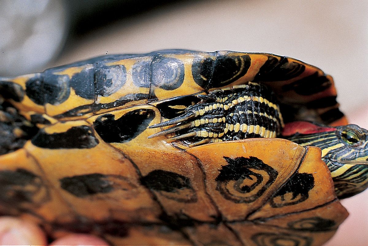 Trachemys scripta elegans: las uñas de los dedos de las extremidades anteriores del macho están particularmente desarrolladas y son utilizadas durante la danza nupcial