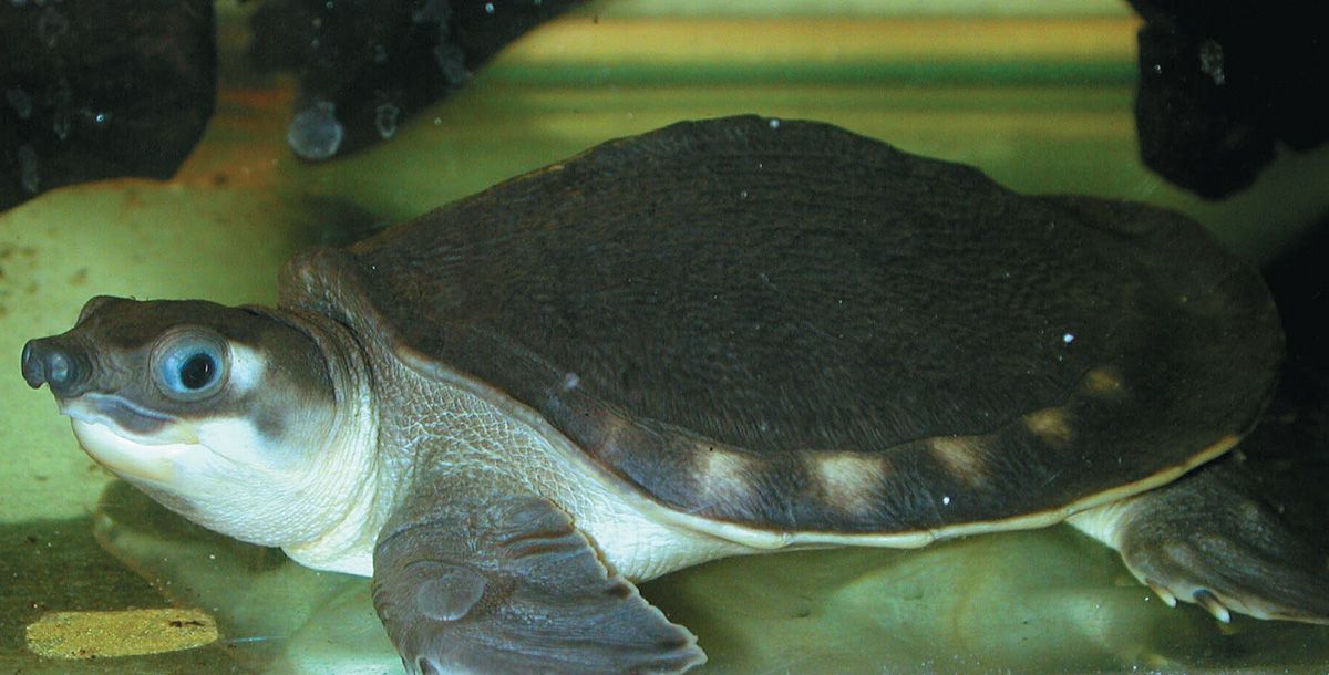 Simplemente estirando la cabeza y mostrando el apéndice del hocico, este trioníquido puede permanecer en el fondo del contenedor