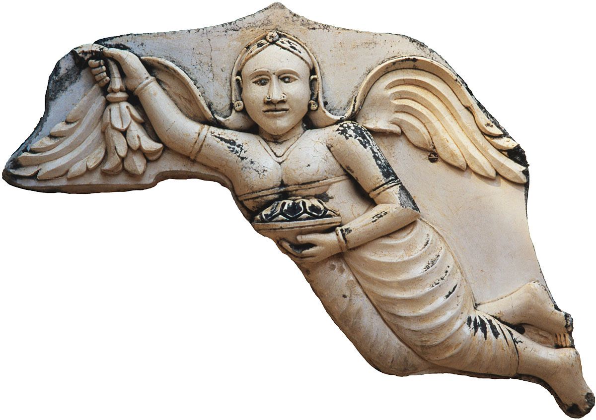 Escultura de un ángel sobre un muro (detalle), City Palace, Udaipur, Rajasthan, India