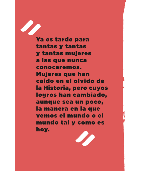 DESPUÉS DE MUERTAS NO QUEDA NADA, EXCEPTO EL RECUERDO QUE DEJEMOS en nuestros seres queridos. Pero si hablamos de pasar a la posteridad, después de muertas no queda nada, excepto lo que se escriba sobre nosotras. Por eso, la Historia, esa historia con mayúsculas, está llena de hombres que han hecho cosas —buenas o malas—, pero hombres, siempre hombres, que han trascendido a sus vidas cotidianas y se han ganado algunos renglones en las páginas de los libros.