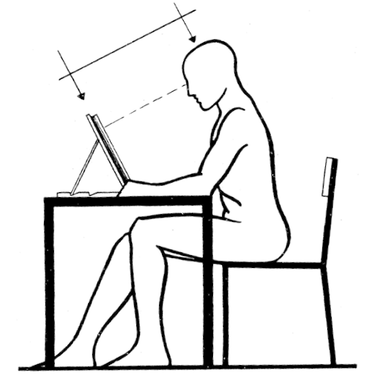 Este tema fue objeto de numerosos estudios, llegándose a la conclusión de que cada ser humano tiene su distancia óptima respecto del escrito. Esta distancia se denuncia por la simple comodidad. Cada uno debe esforzarse por determinarla y, en adelante, sostenerla en sus lecturas. La inclinación debe estar dada por una distancia equivalente de los ojos a la primera y última líneas del texto. El atril, al soportar el libro de forma propicia, resulta un valioso elemento auxiliar para todo tipo de lecturas (Fig. 1).