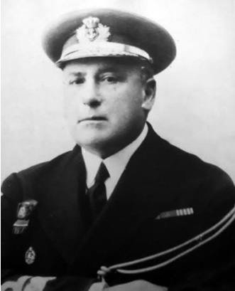 Vicealmirante Miguel de Mier y del Río, al mando de la flota en Ferrol. Nacido el 14 de agosto de 1872 en San Fernando, Cádiz, se graduó en la Academia Naval como alférez de navío en diciembre de 1893. Combatió en Cuba y en el Norte de África antes de alcanzar el almirantazgo en 1935. Detenido el 19 de julio por sus subordinados a bordo del crucero Miguel de Cervantes, buque insignia de la flota, por ser sospechoso de unirse a la sublevación, fue asesinado en el buque el 7 de agosto de 1936.