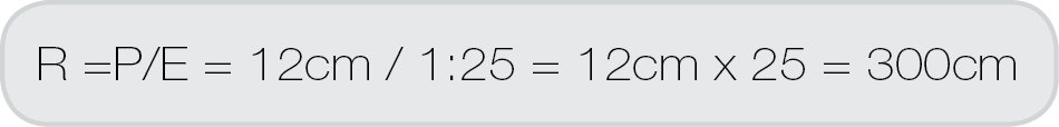 ∙Si tenemos un segmento de 12 cm en el plano, y sabemos que su escala es 1:25, despejaríamos R de la fórmula para saber la magnitud real, con lo que