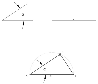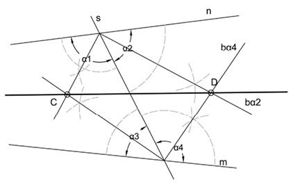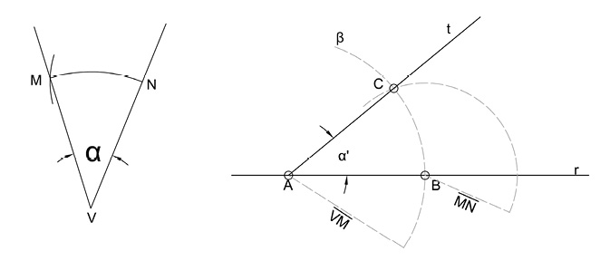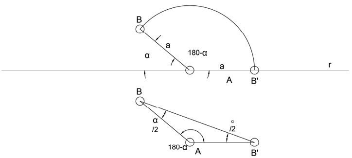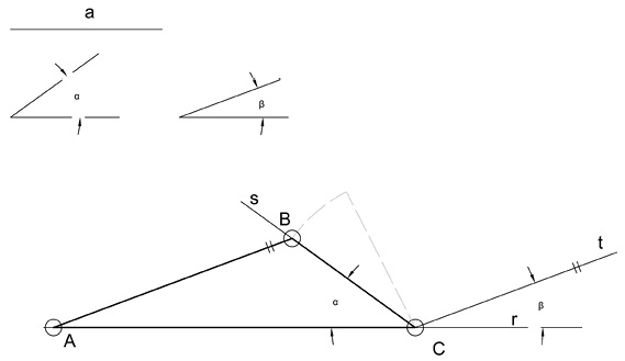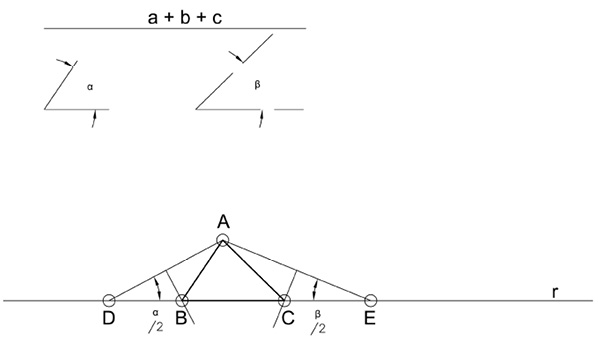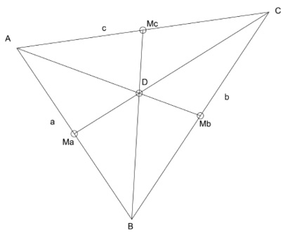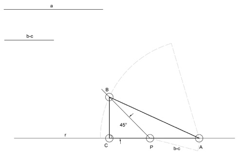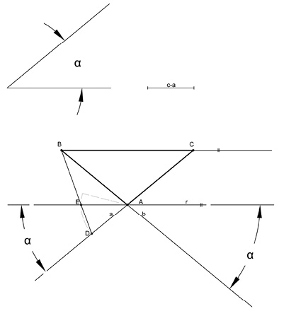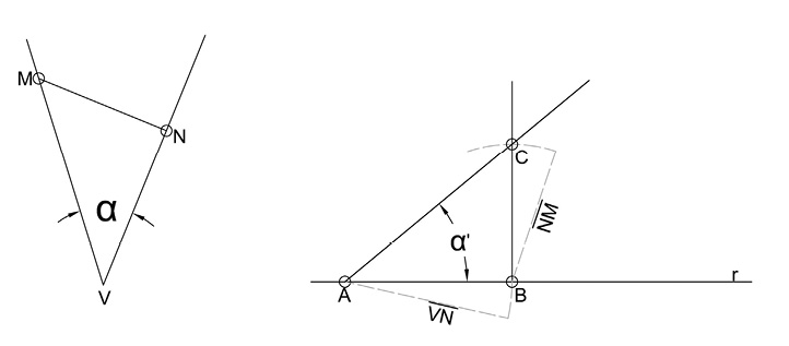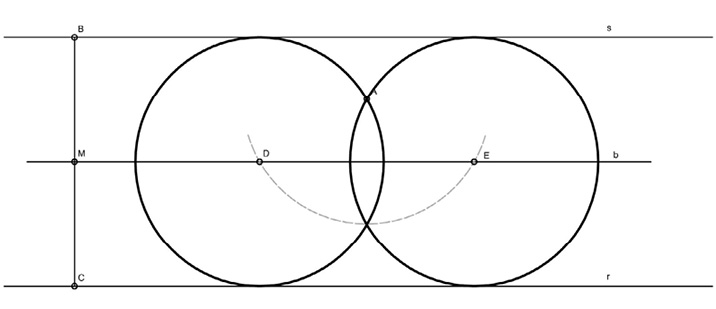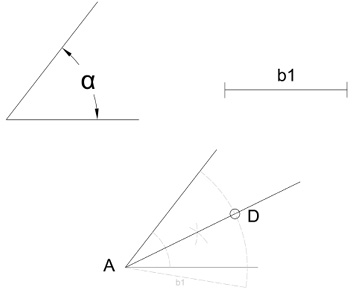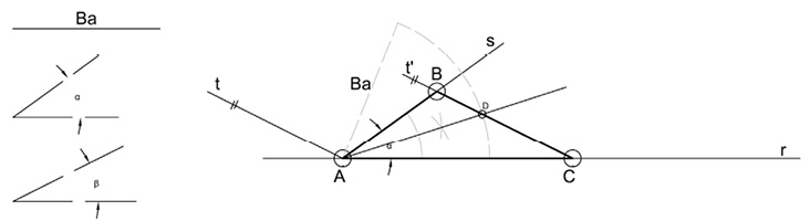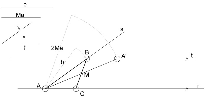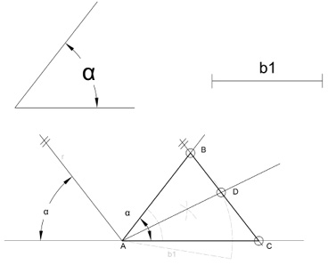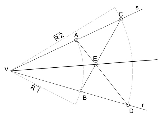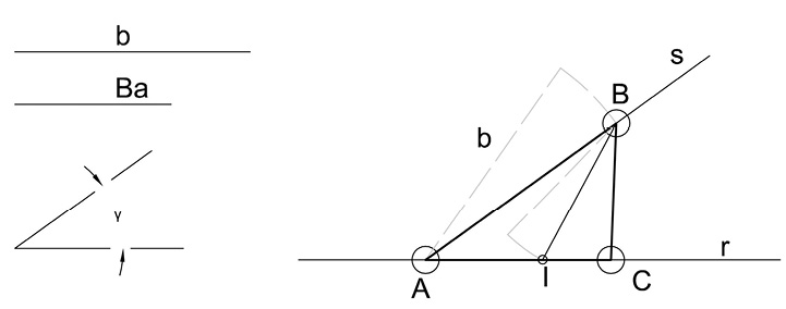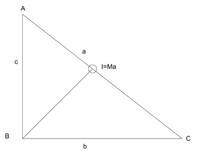 b.Recta que divide a las rectas que forman el ángulo en dos segmentos iguales.