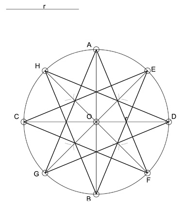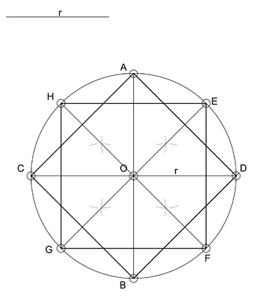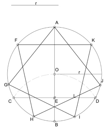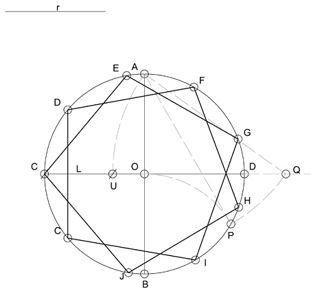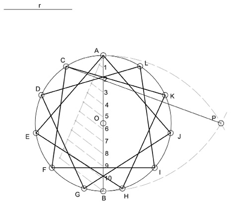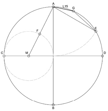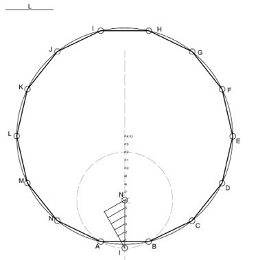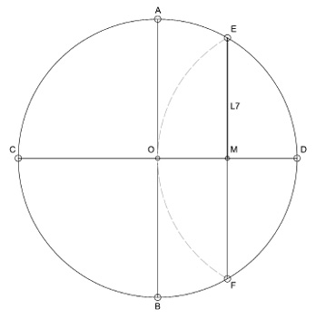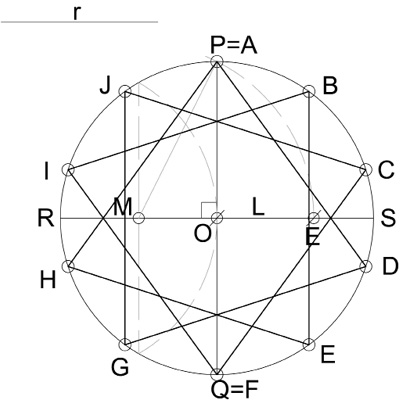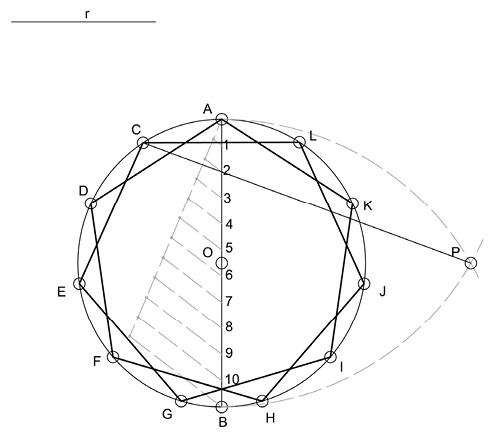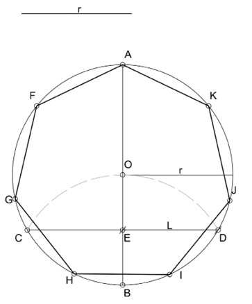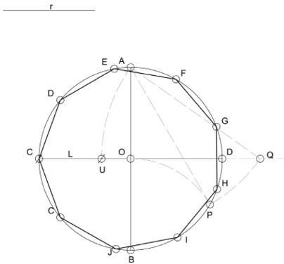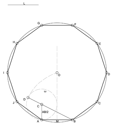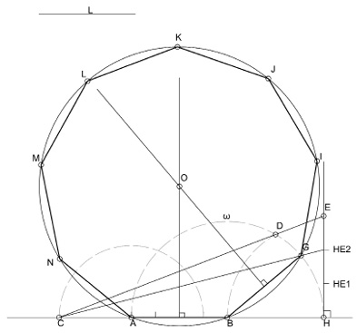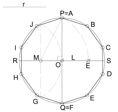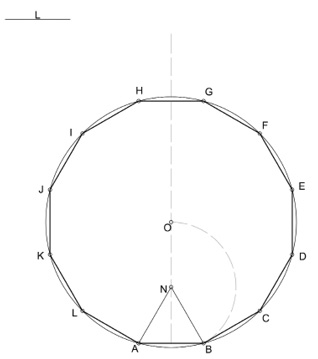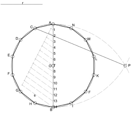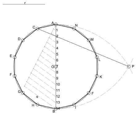 –El polígono con un número de lados que tiende a infinito presentará un tamaño del lado tan pequeño que se representará mediante un punto, es decir, esta sucesión de puntos es lo que llamamos circunferencia. Un polígono de lados infinitos que realmente no presenta ni lados ni ángulos.