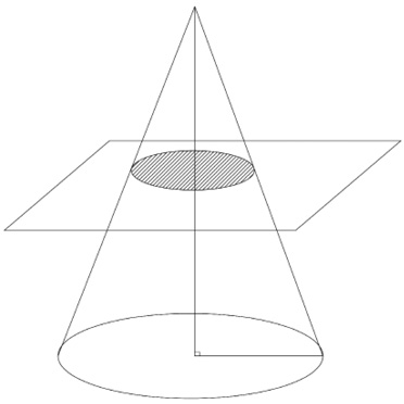 a.El corte de un plano secante perpendicular al eje de un cono de revolución.