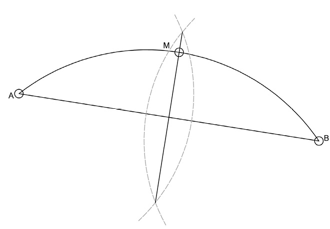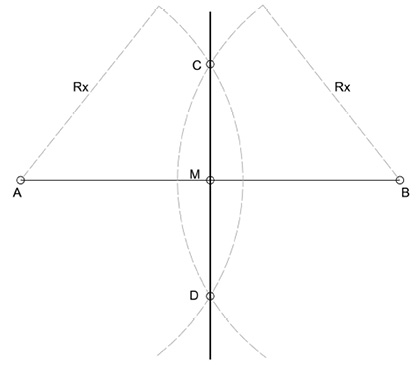 –La mediatriz, es la recta perpendicular a un segmento que divide a este en dos partes iguales, por lo que en su intersección, obtendremos el punto M, punto medio de dicho segmento.