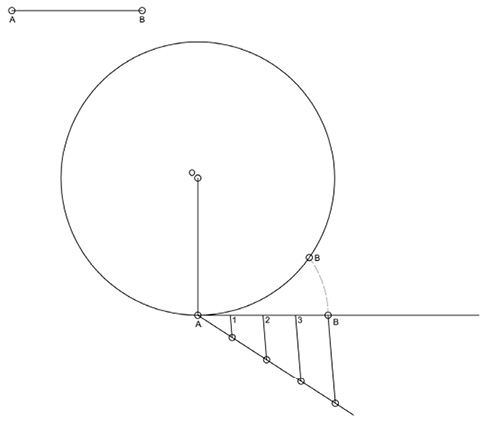 Si por el contrario lo que queremos es saber la medida real de un segmento que esté representado en el plano, lo que haríamos sería tomar esa medida con el compás y llevarla sobre la escala gráfica, de la siguiente manera.