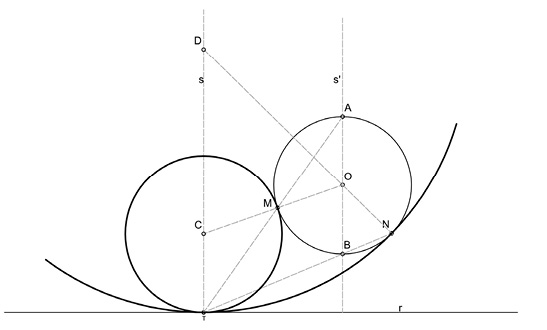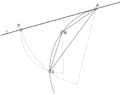 –La tangencia a una curva o una circunferencia sucede cuando una recta, una curva u otra circunferencia toca a la circunferencia inicial en un solo punto. Este punto se denominará el punto de tangencia, representado generalmente por las letras T, M o N