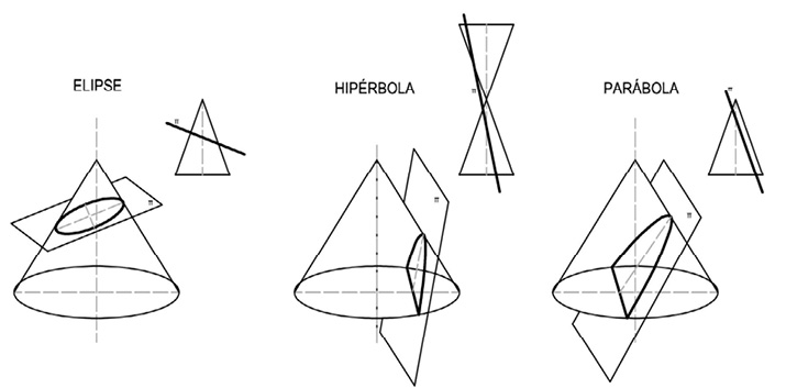 –En función de cómo el plano secante corte al cono de revolución, podremos obtener la figura de la elipse, la hipérbola o la parábola.