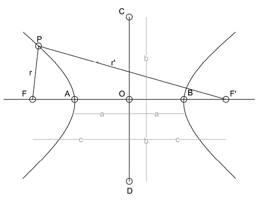 a.La diferencia de los radios vectores es igual a la medida entre sus focos.