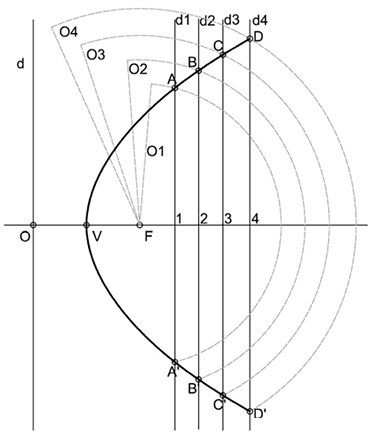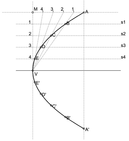 b.El corte de un plano secante paralelo a la generatriz de un cono de revolución.