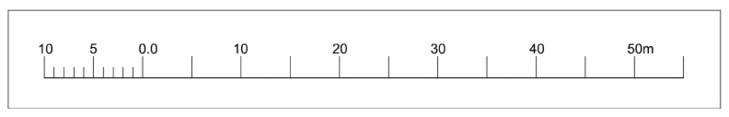 Así, si con una punta situada en la división 30, la otra no llega a la contra escala (es decir, la medida tomada es menor de 30 metros en la medida real), colocaremos la punta en la división inferior, en la de 20 m.