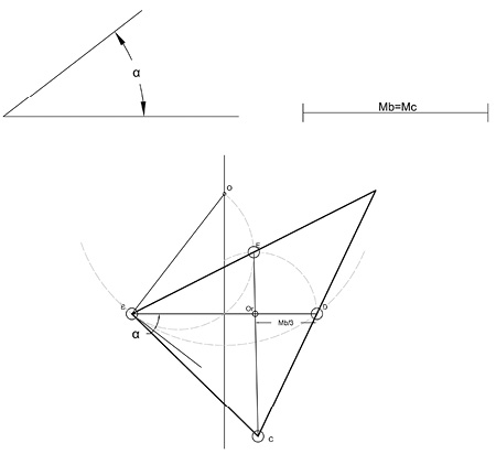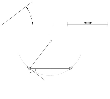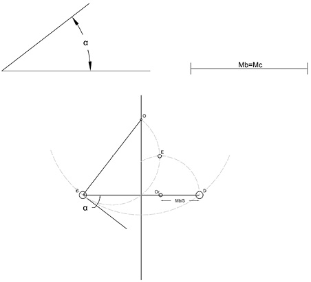 ∙Por su extremo izquierdo, osea el punto 0.0, le hacemos una línea perpendicular y elegimos un punto cualquiera de este, que llamaremos P.