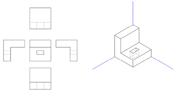 Por ello, debemos realizar un segundo y hasta un tercer dibujo correspondientes a las vistas ortogonales desde dos de sus lados, de manera que con la unión de los tres dibujos, cualquier persona sería capaz de representarla o entenderla.
