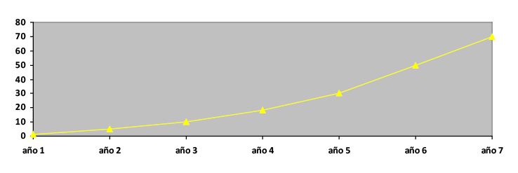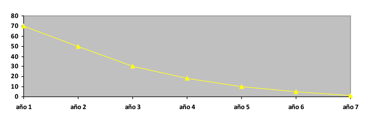En el eje de ordenadas se representa el efectivo obtenido y en el eje de las abscisas se representa la duración temporal de la operación.