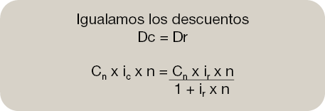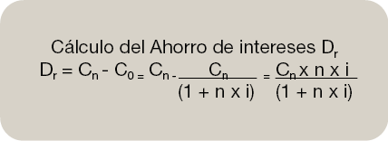 Una de las desventajas o inconvenientes que presentaba el descuento comercial eran sus elevados costes. El cálculo del descuento comercial es el equivalente a la inversa de la capitalización simple. Partimos de la misma fórmula matemática.