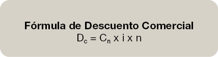 Vamos a realizar el cálculo del descuento comercial. Primero presentaremos las variables que van a intervenir: