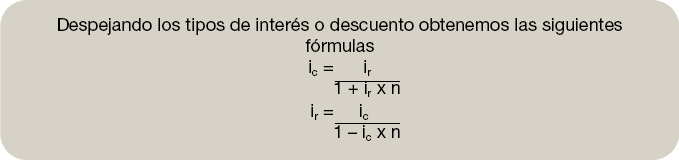 Para aplicar las siguientes fórmulas los capitales, el interés y la razón deben mostrarse en la misma unidad.