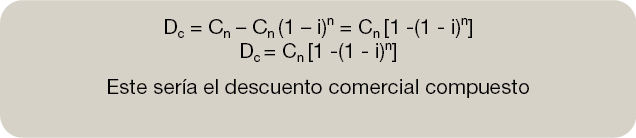 –El descuento comercial o bancario consiste en anticipar la entrega de un capital, que deberíamos cobrar o tener en un futuro y queremos cobrar o tener en el momento actual.