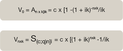 b x k: la suma aritmética de los capitales del primer período de la renta.