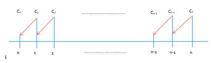 Los periodos entre capitales en este tipo de rentas son diferentes pero siguen una progresión en este caso, una progresión geométrica. Cada capital es el anterior multiplicado por un número que denominaremos q.