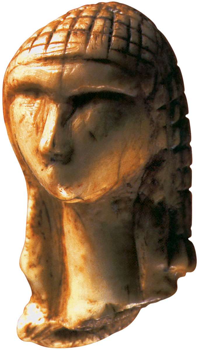 1. La Venus de Brassempouy, o Dama de Brassempouy, Gruta del Papa, Brassempouy, Landas, Paleolítico superior, Gravettien, c. 21000 a. C. Colmillo de mamut, al.: 3,65 cm. Musée d’archéologie nationale, Saint-Germain-en-Laye.