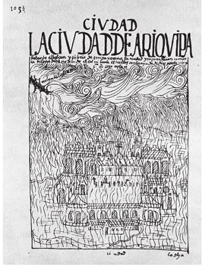Ciudad de Arequipa, 1613, en Felipe Guamán Poma de Ayala, Nueva corónica y buen gobierno. Madrid, Biblioteca Nacional. Foto: akg-images/Album/Oronoz (AKG25108993).