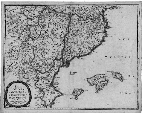 Les estats de la Couronne d’Arragon en Espagne, ou sont l’Arragon royaume, la Catalogne principté., la Valence royaume, et les isles de Maiorque royaume. / par le S. Sanson d’Abbeville ; Somer sculp. A Paris: chez Pierre Mariette, 1653. Institut Cartogràfic i Geològic de Catalunya (ICGC).