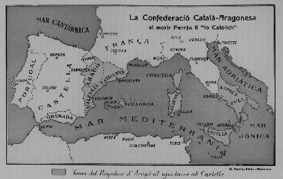 La Confederació Català-Aragonesa al morir Ferràn II «lo Catòlich». Geografia General de Catalunya, [vol.1], 1908-1918. Francesc Carreras Candi. Institut Cartogràfic i Geològic de Catalunya (ICGC).
