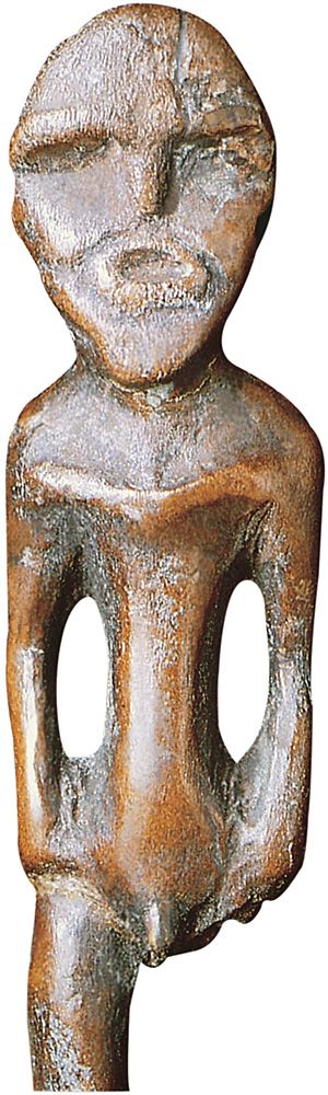 Anónimo, Ídolo masculino, 3000-2000 a.C. Cuerno de alce, h: 9.3 cm. Museo Nacional de Arqueología, Château de Saint-Germain-en-Laye, Saint-Germain-en-Laye.