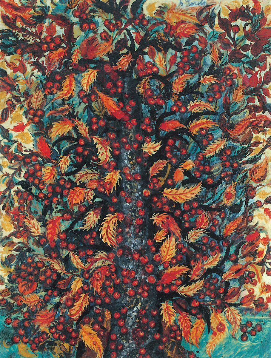 Séraphine Louis, llamada Séraphine de Senlis, Las Cerezas. Óleo sobre tela, 117 x 89 cm. Museo Charlotte Zander, Bönnigheim.